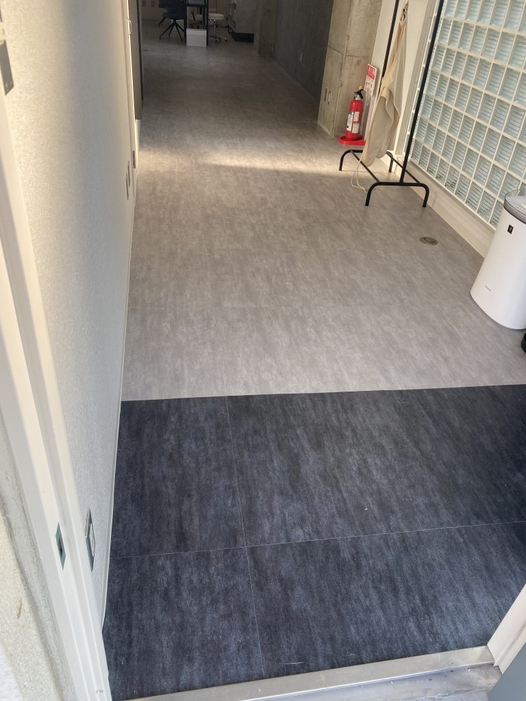 入り口床は同じ柄の色違いでアクセントをつけました。